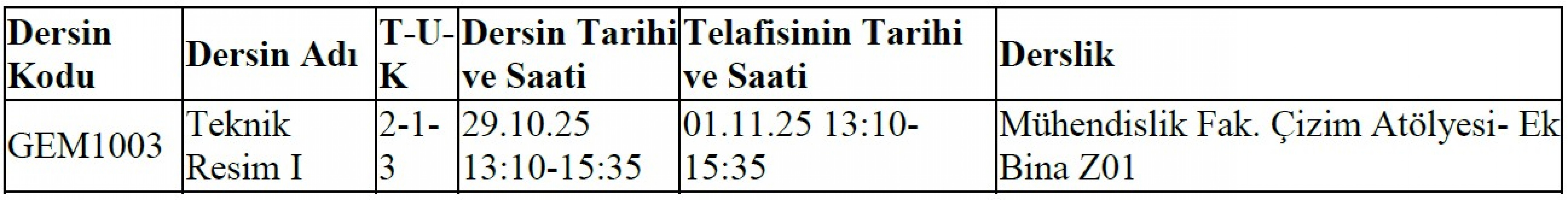 Prof. Dr. Ali Riza MOTORCU'nun Ders Telafi Programı